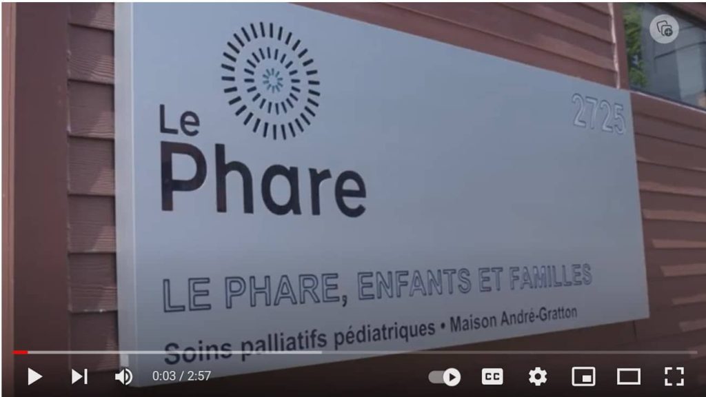 Fondé en 1999, Le Phare, Enfants et Familles est une ressource unique et une maison de soins palliatifs pédiatriques qui offre gratuitement des soins complets 24/7 aux enfants atteints d’une maladie limitant l’espérance de vie et de l’accompagnement psychosocial à leur famille.